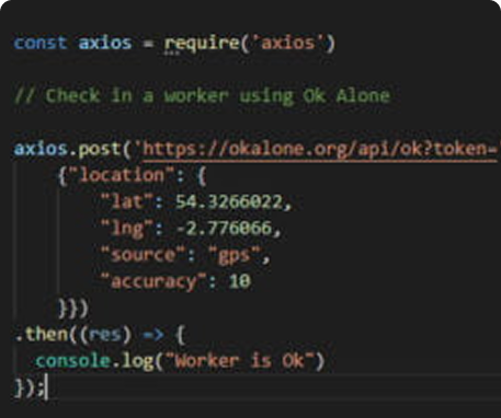 Our robust API allows businesses to integrate dependable lone worker monitoring directly into their own applications—no need to build a new system from scratch.